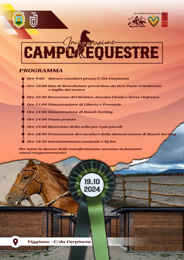 Sabato 19 ottobre, infatti,  a partire dalle ore 9, avrà luogo l’inaugurazione del Campo Equestre.