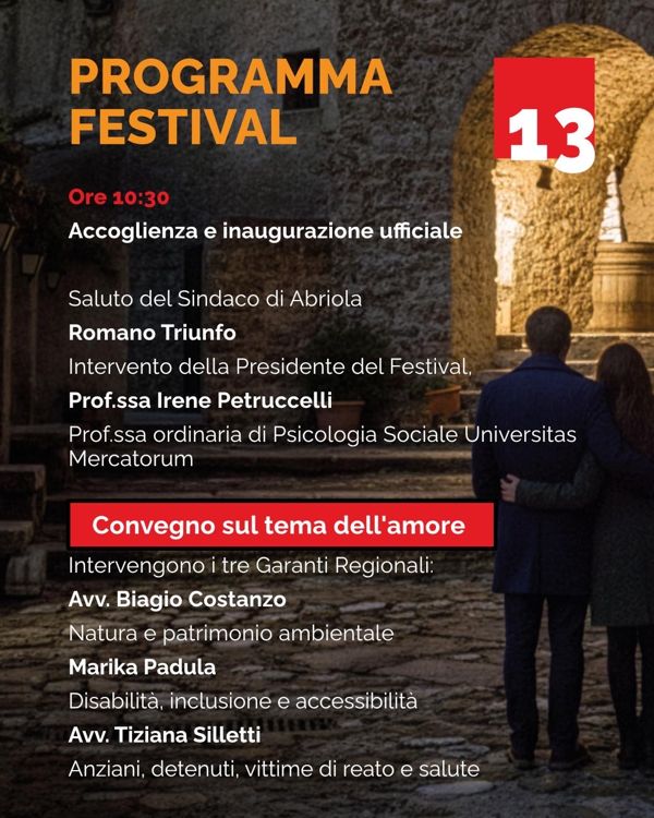 L’incontro rientra nel programma della prima edizione del Festival dell’Amore ed è aperto a pubblico e stampa.