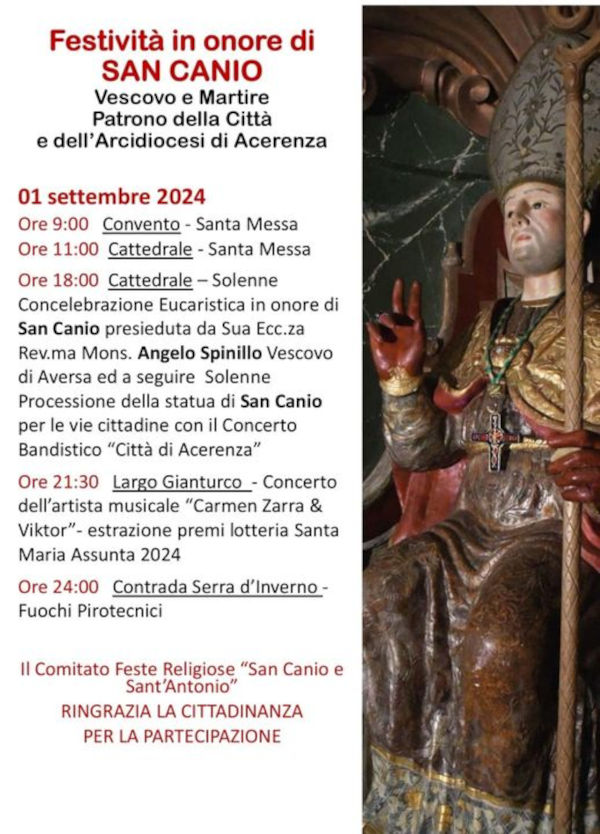 Il 1 Settembre si festeggia il Santo patrono di Acerenza, San Canio.