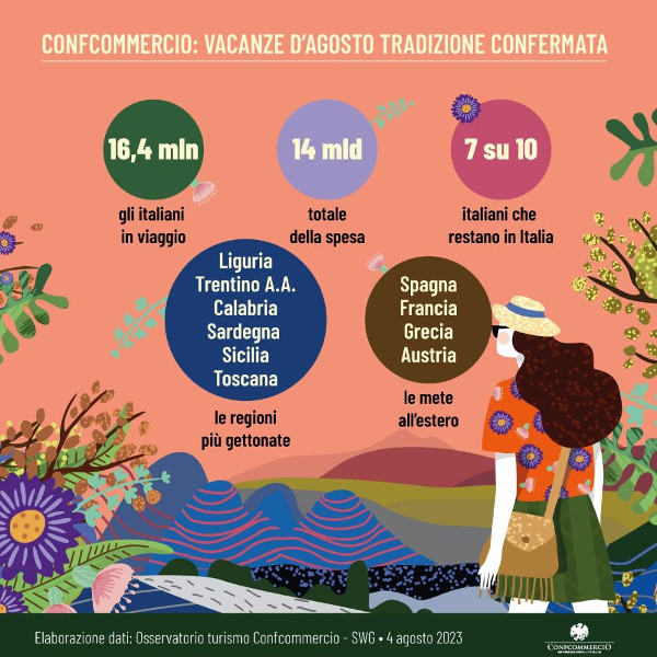 Da giugno a settembre, sono 28 milioni gli italiani propensi ad effettuare almeno una vacanza, per un totale di 60 milioni di partenze, generando una spesa complessiva di circa 41 miliardi di euro.