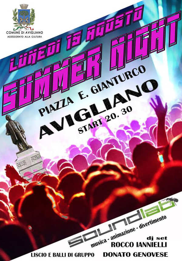 Un Ferragosto che si protrae fino a tarda sera quello proposto dal Comune di Avigliano con l’evento “Summer Night”.
