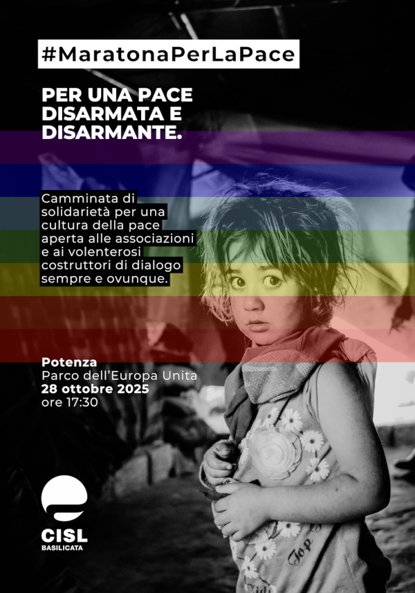 La Cisl Basilicata lancia un invito alle associazioni e ai volenterosi costruttori di pace a partecipare alla Maratona per la Pace, iniziativa nazionale promossa dalla Cisl che attraversa tutto il Paese per affermare un messaggio semplice ma potente: nessuna guerra è inevitabile, ogni conflitto può trovare una via di dialogo e la dignità della vita umana deve restare il fondamento di ogni futuro possibile.