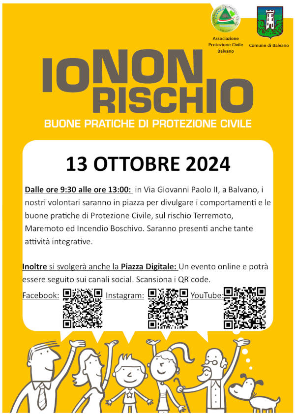 Domenica 13 ottobre anche BALVANO partecipa alle giornate nazionali della campagna “Io non rischio – Buone pratiche di protezione civile”.