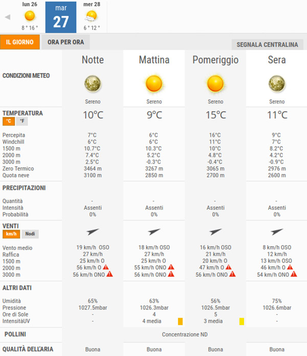 La temperatura massima registrata pare che sarà di 15°C, la minima di 9°C.