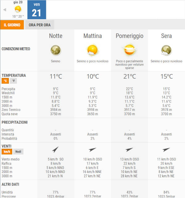 La temperatura massima registrata pare che sarà di 21°C, la minima di 10°C.