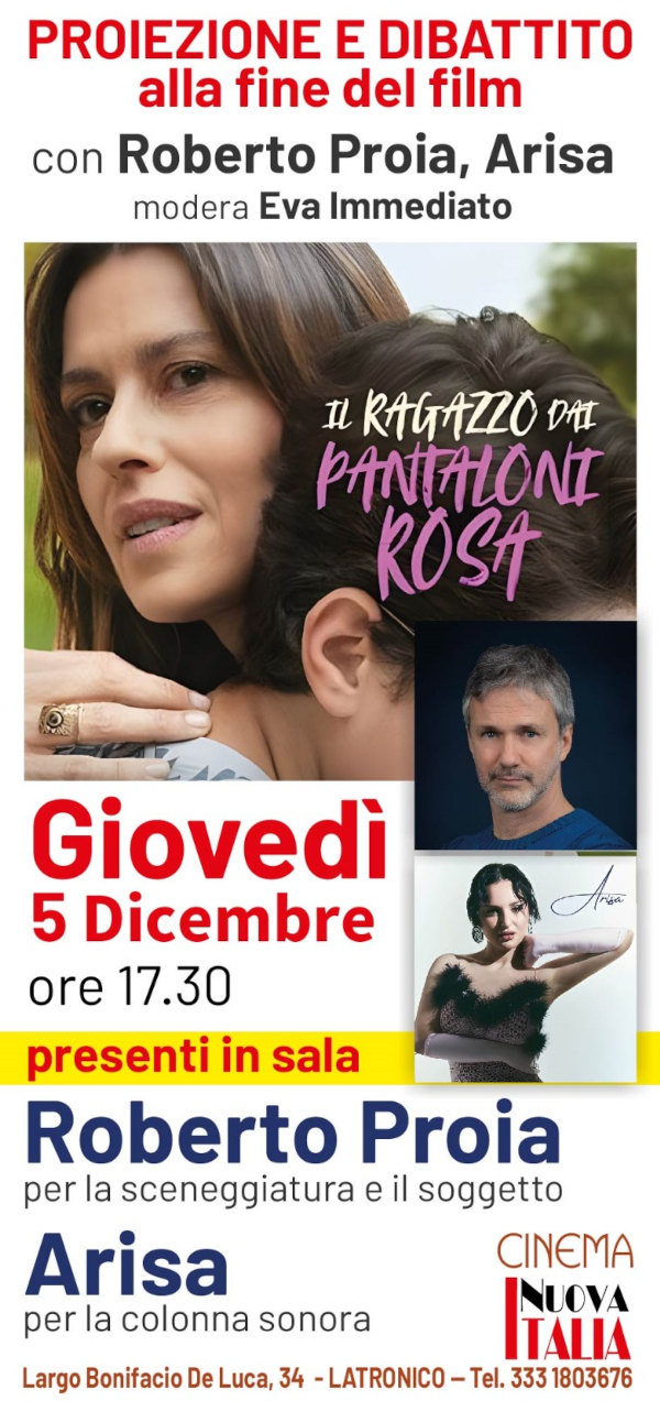 Il ragazzo dai pantaloni rosa” il fenomeno cinematografico del momento nelle sale italiane sarà proiettato domani pomeriggio 5 Dicembre alle 17:30 a Latronico, presso il cinema Nuova Italia.