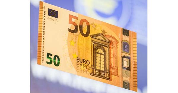 Ecco perché si è pensato di produrre un nuovo taglio più sicuro: sono stati fatti interventi al colore, con la cifra che cambia colore passando dal verde al blu e se si vede la banconota di riflesso si nota il volto di Europa e sul retro la cifra è scritta più volte.