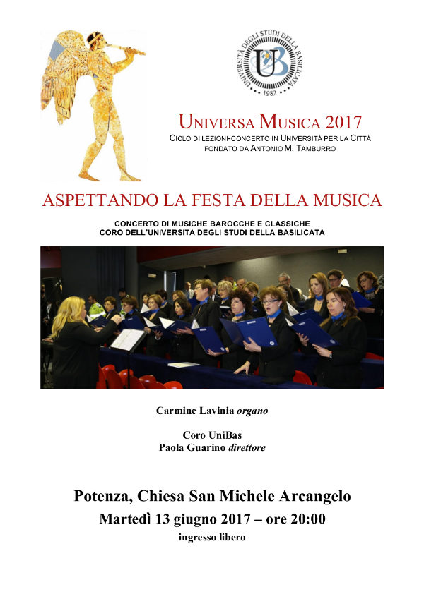 Si terrà Martedì 13 Giugno a Potenza nella Chiesa di San Michele Arcangelo, con ingresso libero alle ore 20:00, il concerto del coro dell’Università della Basilicata, di musiche barocche e classiche, aspettando la “Festa della musica” e organizzato da Universa Musica.
