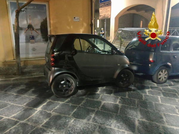 Nel Centro storico, in via Caporella, la conducente di una Smart alimentata a benzina, appena fermato il veicolo, ha notato del fumo uscire dal vano motore.