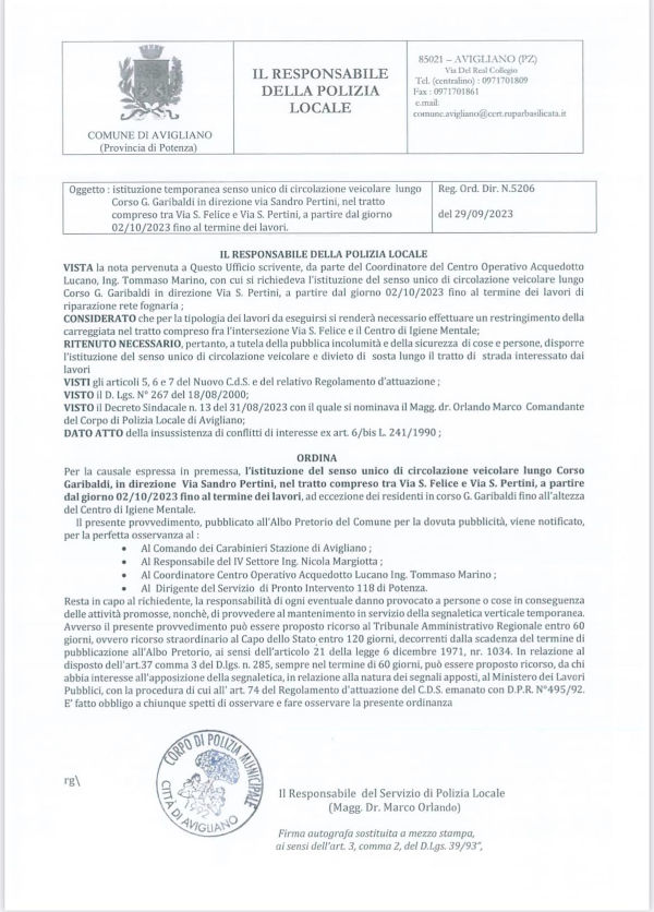Sarà previsto dunque il SENSO UNICO per tutta la durata dell’intervento, come da ordinanza”.