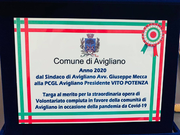 “Questa sera abbiamo deciso di dedicare alla nostra Protezione Civile Gruppo Lucano di Avigliano una targa al merito come segno di gratitudine dell’intera comunità per il lavoro storico che hanno svolto e che stanno svolgendo in questa pandemia a sostegno delle famiglie in isolamento.