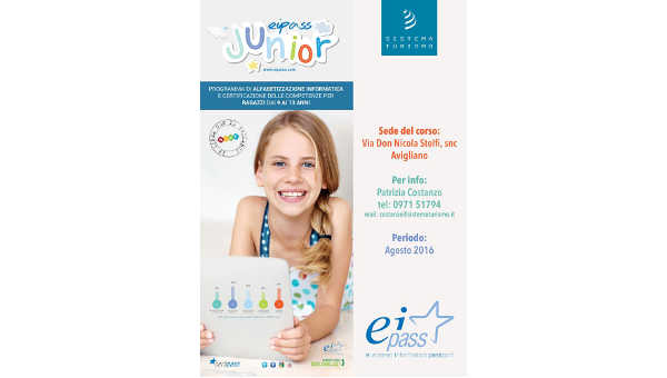 Si terrà, a partire dal 2 Agosto, presso la sede di Avigliano di Sistema Turismo, in via Don Nicola Stolfi, un corso di alfabetizzazione informatica per ragazzi dai 9 ai 13 anni organizzato da Sistema Turismo, Agenzia italiana di ETN ed Ei-Center Ei-Pass accreditato.