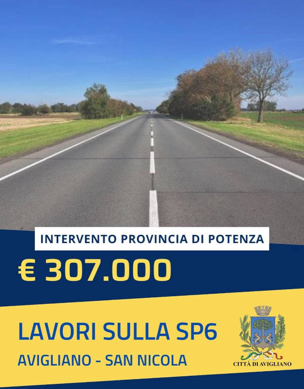 “307mila euro sulla SP 6 Avigliano – San Nicola.