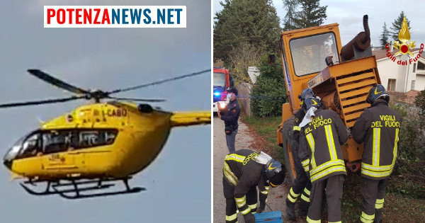 I Vigili del fuoco, hanno provveduto alla messa in sicurezza della macchina operatrice, mentre l’uomo stabilizzato da personale sanitario è stato trasportato in eliambulanza presso l’ospedale San Carlo di Potenza.