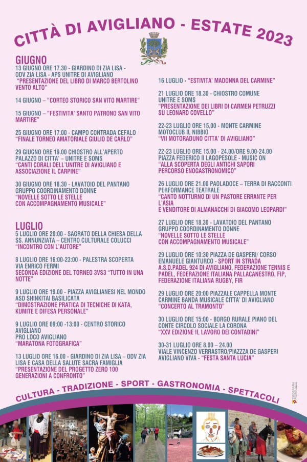 Avigliano pronta a vivere un’estate di cultura, musica e sport.