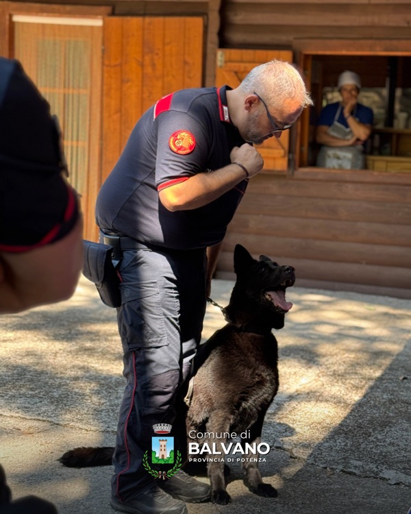 Questa mattina il Sindaco di Balvano, Ezio Di Carlo, e l’Assessore Roberto Zarrillo hanno partecipato insieme ai ragazzi del Campo Scuola all’incontro con i Carabinieri Cinofili.