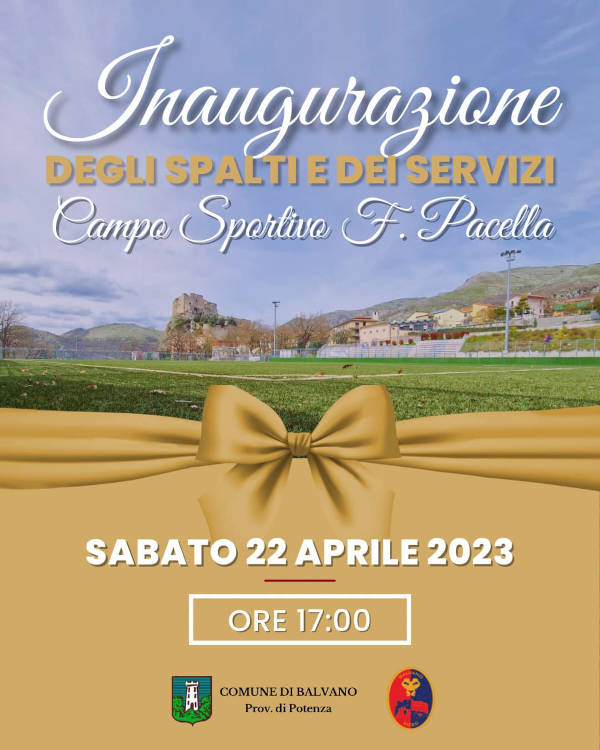 Il Sindaco Ezio Di Carlo, in una nota, fa sapere che è tutto pronto per l’inaugurazione degli spalti e dei servizi annessi del campo sportivo di Balvano F. Pacella che si terrà sabato 22 aprile alle ore 17:00.