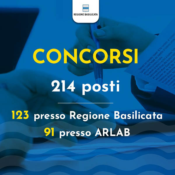 Oggi in Giunta abbiamo approvato i bandi di concorso per 214 posti in Regione Basilicata e Arlab.