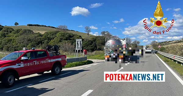 Alle ore 09:05 circa, la squadra Vigili del Fuoco del Comando di Matera che opera presso il distaccamento di Policoro è intervenuta per un incidente stradale occorso sulla S.S. 598 Val d’Agri al km. 99+600 fra un’autocisterna guidata da un uomo di 28 anni residente a Marsicovetere rimasto illeso e un autocarro il cui conducente, 83enne di Stigliano è stato condotto presso l’ospedale di Policoro dagli operatori del 118.