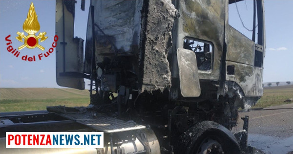 Camion in fiamme nel pomeriggio di oggi sulla strada Matera-Santeramo (ex SP 271).