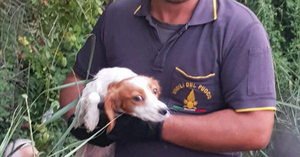 Salvato dalla squadra dei Vigili Del Fuoco del Distaccamento di Policoro un cucciolo di cane, caduto in canale di bonifica profondo oltre cinque metri, in contrada Ischia in agro di Montalbano (Matera).