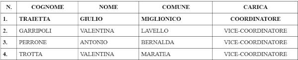 - Valentina Trotta (Comune di Maratea) (nel riquadro in basso gli eletti).