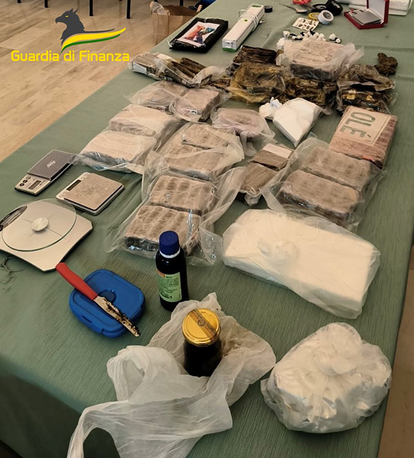 In sintesi, l’operazione permetteva di sequestrare oltre 15 Kg di sostanza stupefacente, fra cocaina, hashish e marijuana, nonché attrezzatura plausibilmente usata per il taglio ed il confezionamento della droga, e circa € 1000 in contanti, quale verosimile profitto del reato.