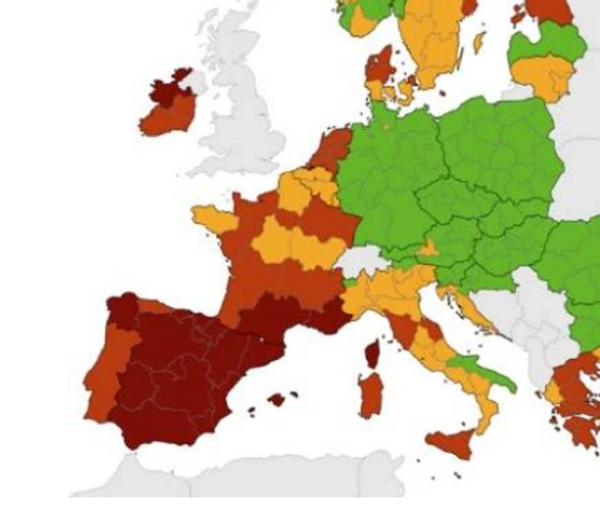 Peggiora ulteriormente la situazione epidemiologica in Italia, misurata dal Centro europeo per il controllo e la prevenzione delle malattie, in base all’incidenza dei casi positivi a 14 giorni ogni 100mila abitanti, combinata con il tasso di positivi sui test effettuati.