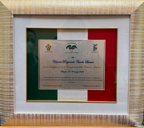 Il Team Basilicata ha conquistato a fine Marzo 2022 la medaglia d’oro e la coppa Campioni d’Italia ai Campionati della Cucina Italiana 2022 di Rimini.