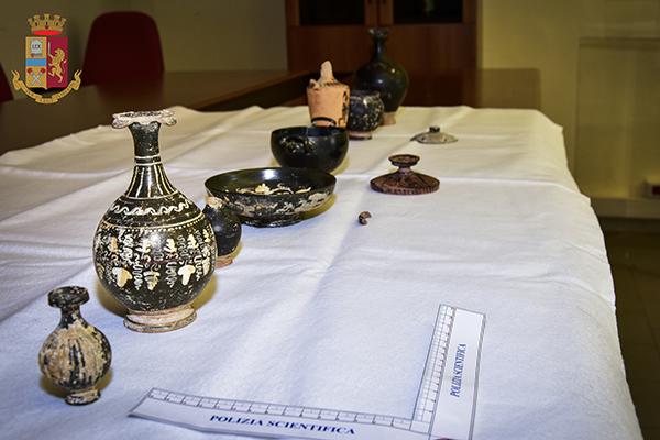Successivamente, la perquisizione domiciliare venne effettuata anche a carico del presunto assuntore, nella cui abitazione sono stati rinvenuti i dieci oggetti in terracotta (piccole anfore, vasi e piattini), per cui subito è nato il sospetto che fossero beni di interesse archeologico.