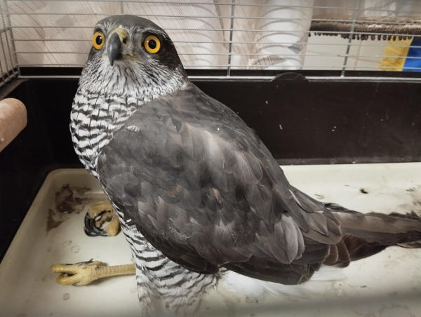 Uno splendido astore con un’ala fratturata.