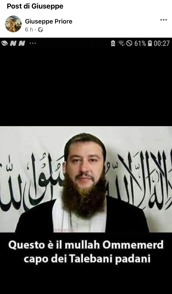 Aver condiviso sul proprio profilo fb un post con cui si offende in maniera del tutto insensata l’onorabilità di Matteo Salvini, leader del primo partito italiano che sostiene l’esecutivo del Premier Draghi, rappresenta un comportamento che non può rimanere nel silenzio e privo di conseguenze.