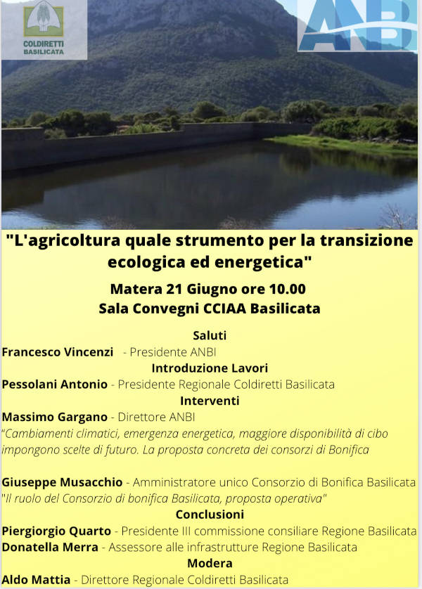 Ne è convinta la Coldiretti di Basilicata che a Matera presso la sede della Camera di Commercio di Basilicata, organizza un convegno sul tema “L’agricoltura quale strumento per la transizione ecologica ed energetica” .