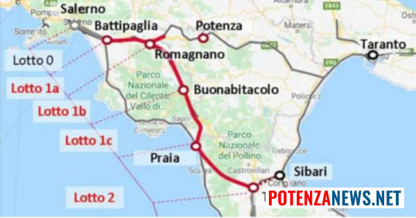 “Obiettivo del lotto 1 è realizzare una nuova linea a doppio binario con velocità di progetto massima pari a 300 km/h che in uscita da Battipaglia si porti in direzione Romagnano, al fine di realizzare una interconnessione con la linea esistente Battipaglia-Potenza, per poi raggiungere l’impianto di Praia.