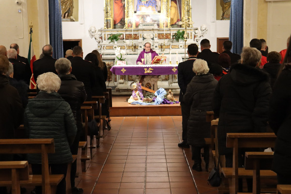 Durante la celebrazione, oltre alla lettura della Virgo Fidelis a cura del Brigadiere Giuseppe Vaccaro, il Sindaco Leonardo Sabato ha voluto esprimere la forte vicinanza della comunità alla famiglia di Donato e all’Arma dei Carabinieri.
