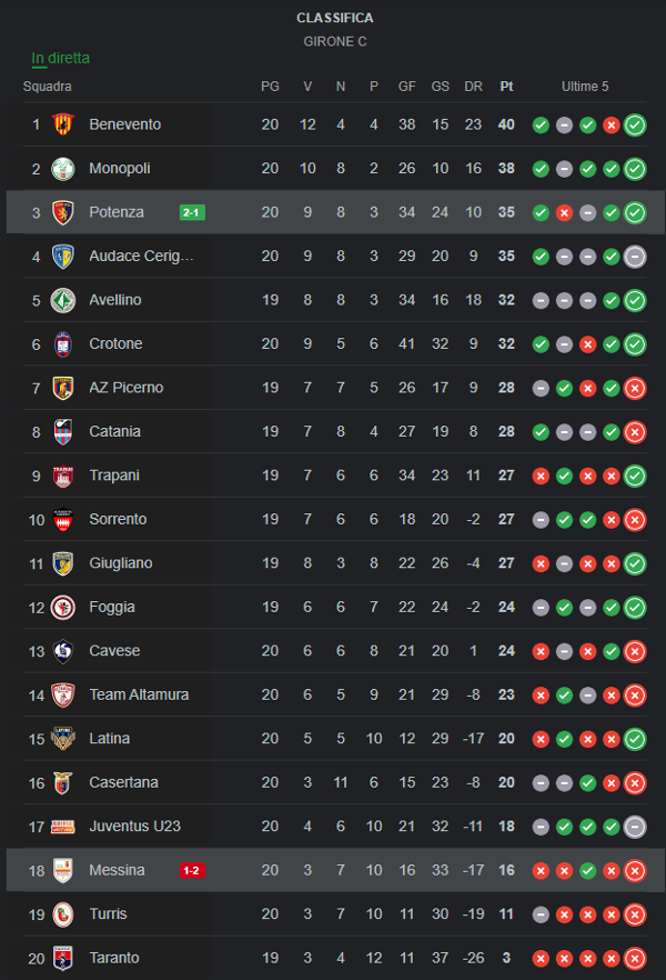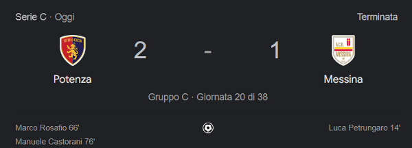 Si è chiusa poco fa la partita tra Potenza Calcio e Messina.