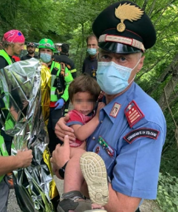 Tra i primi ad abbracciare il piccolo, il comandante della stazione dei carabinieri, il maresciallo Porfida, che poi lo ha condotto dai sanitari pronti con i mezzi di soccorso.