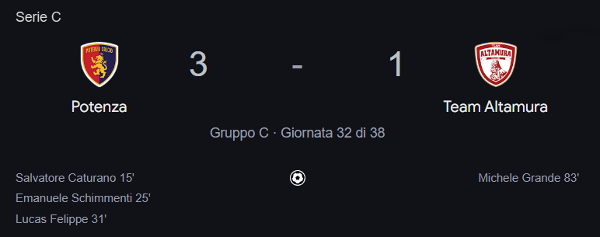 Si è chiusa poco fa la partita tra Potenza Calcio e Altamura.