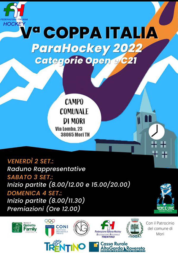 Dal 2 al 4 settembre la città di Mori in provincia di Trento ospita la 5° edizione della Coppa Italia di Parahockey.