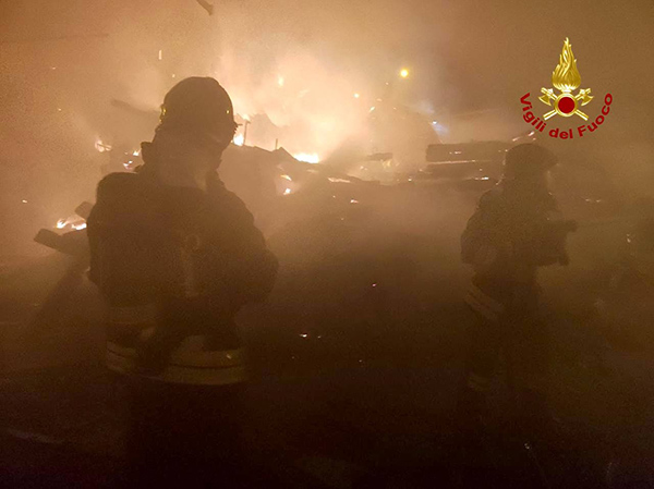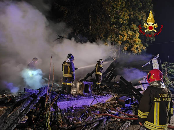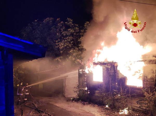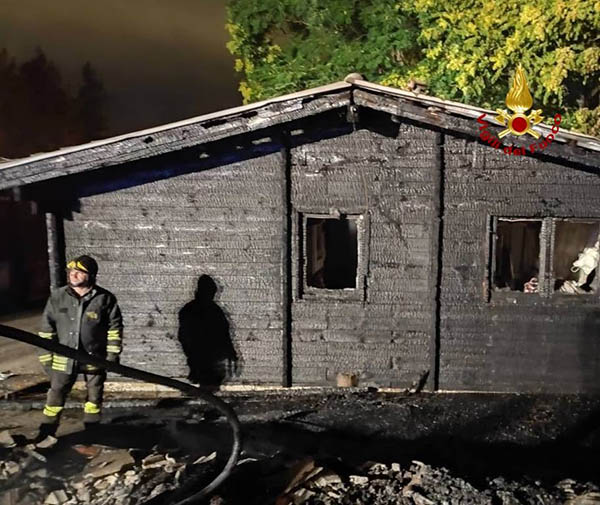 I Vigili del Fuoco hanno limitato i danni ad un secondo prefabbricato lambito dall’incendio.