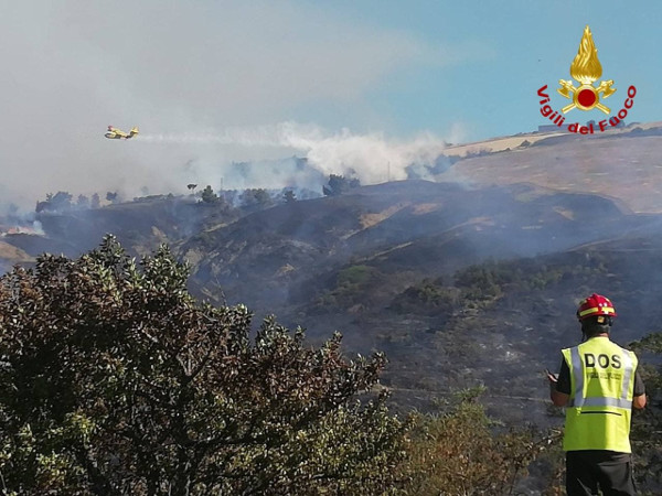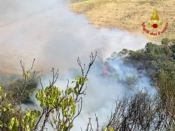 I VV.F. intervenuti, oltre a contenere l’incendio boschivo, sono impegnati a proteggere alcuni insediamenti agricoli presenti in zona.