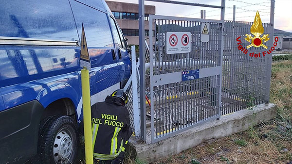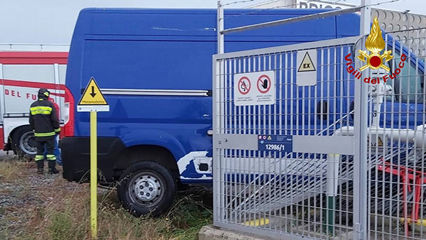 I Vigili del Fuoco arrivati sul posto, hanno trovato un furgone che per cause in corso di accertamento è uscito fuori strada andando ad impattare contro la recinzione che delimita un metanodotto senza provocare danni alle tubazioni del gas.