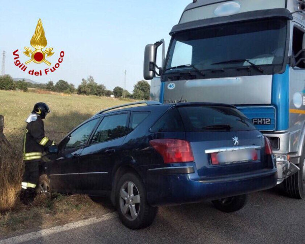 Coinvolti nell’incidente una automobile (marca Peugeot) ed un camion.