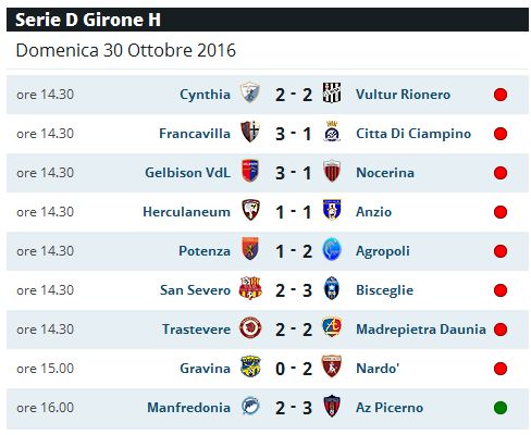 Di seguito i risultati e la classifica del Girone H della Serie D.
