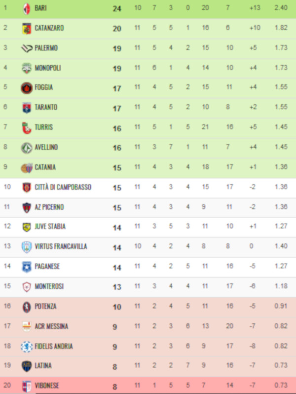 Si è appena conclusa la nona giornata del girone di Serie C 2021-2022.