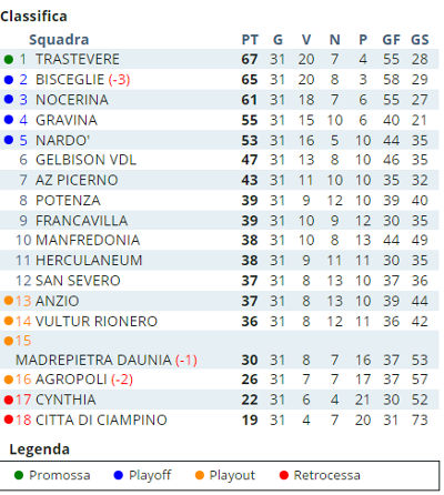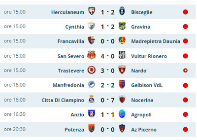 Ecco di seguito i risultati della serie D girone H di questa giornata e la classifica generale.