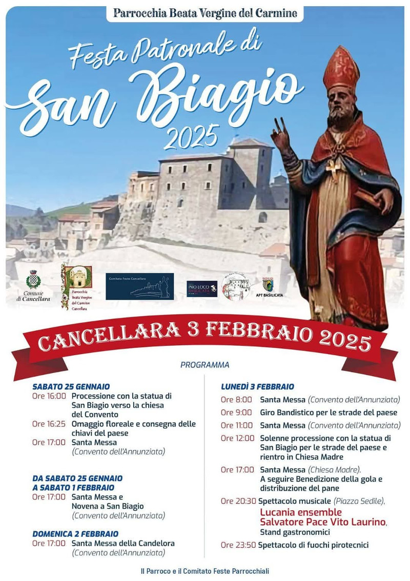 Ecco il programma dei festeggiamenti a Cancellara di San Biagio.