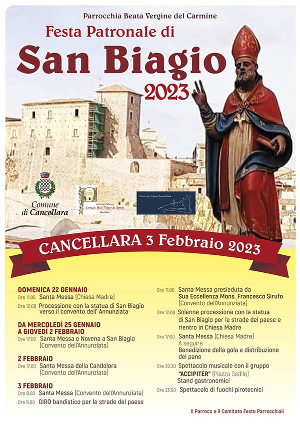 Ecco il programma dei festeggiamenti a Cancellara di San Biagio.