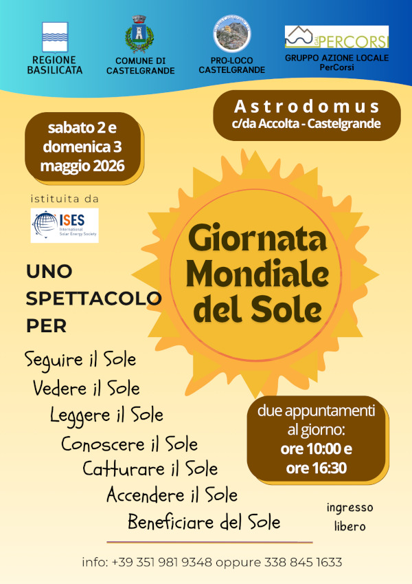 Ci sarà la possibilità di vedere in diretta il sole, di comprendere con quale linguaggio ci parla, di rivedere le regole per un corretto approccio ai raggi solari, di conoscere come la natura utilizza l’energia solare e come noi umani siamo riusciti solo di recente a sfruttarla in maniera sostenibile, e molto altro ancora.