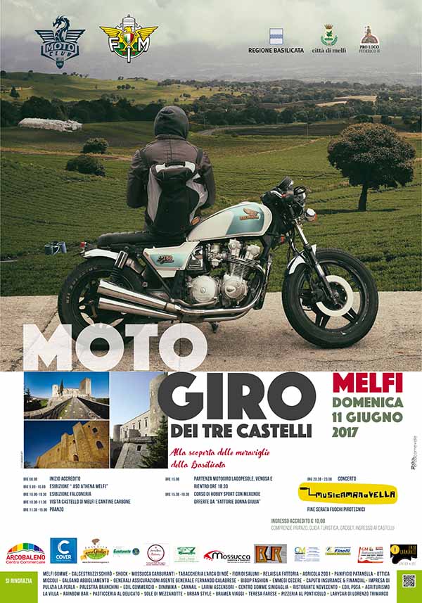 Il Moto Club “Gianpiero di Vito” e la Federazione Motociclistica Italiana organizzano il “Motogiro dei tre Castelli“, un appuntamento sulle due ruote in compagnia delle bellezze del Vulture-Melfese.